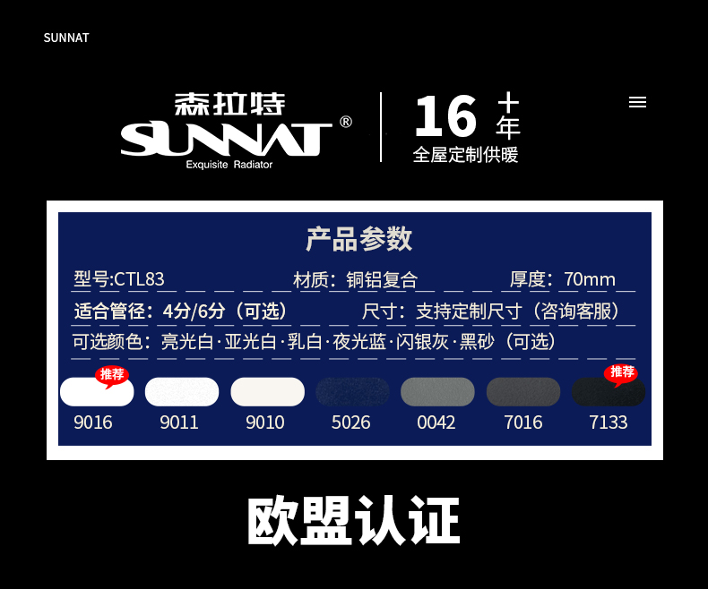森拉特暖气片铜铝复合散热器家用水暖冬黑色集中供暖壁挂式小背篓