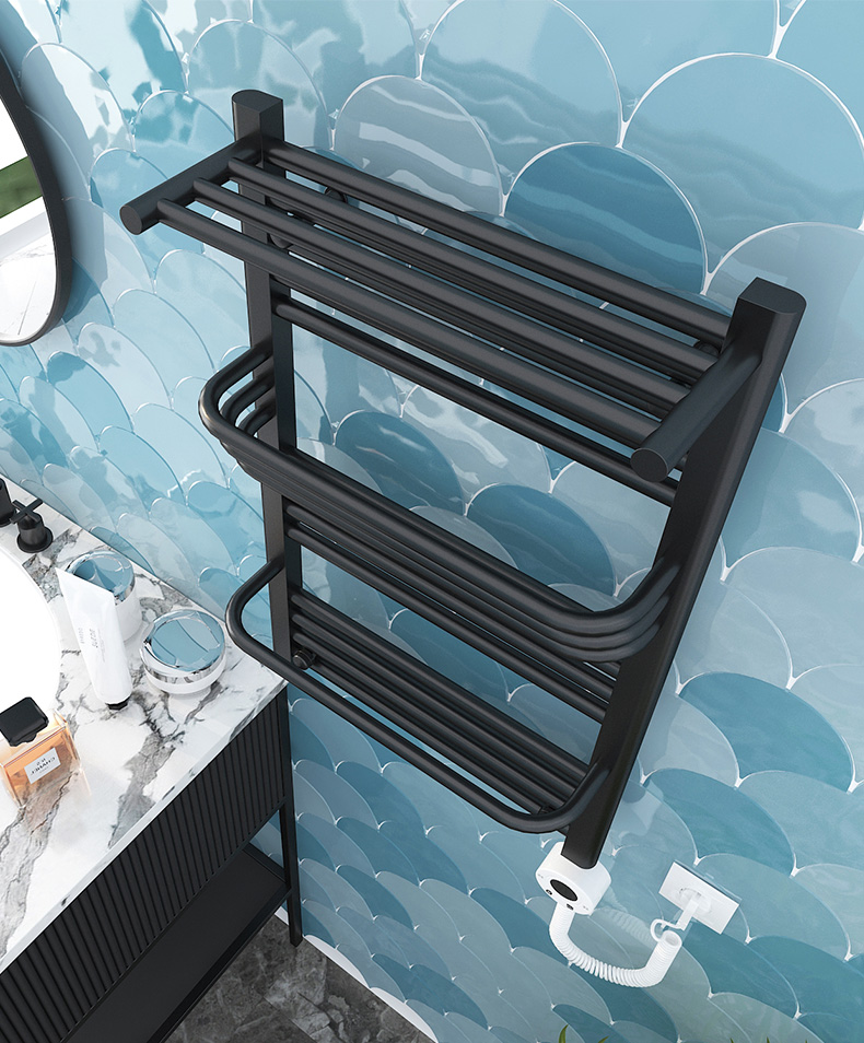 森拉特电热毛巾架卫生间置物架钢制烘干毛巾架智能恒温加热小背篓